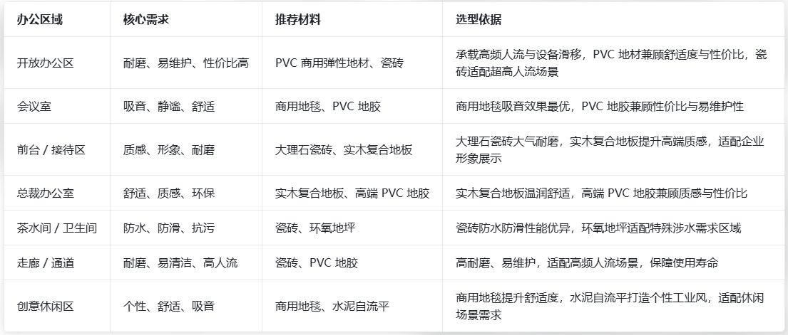一、办公室地面材料选型核心准则,基于功能确立选型基底